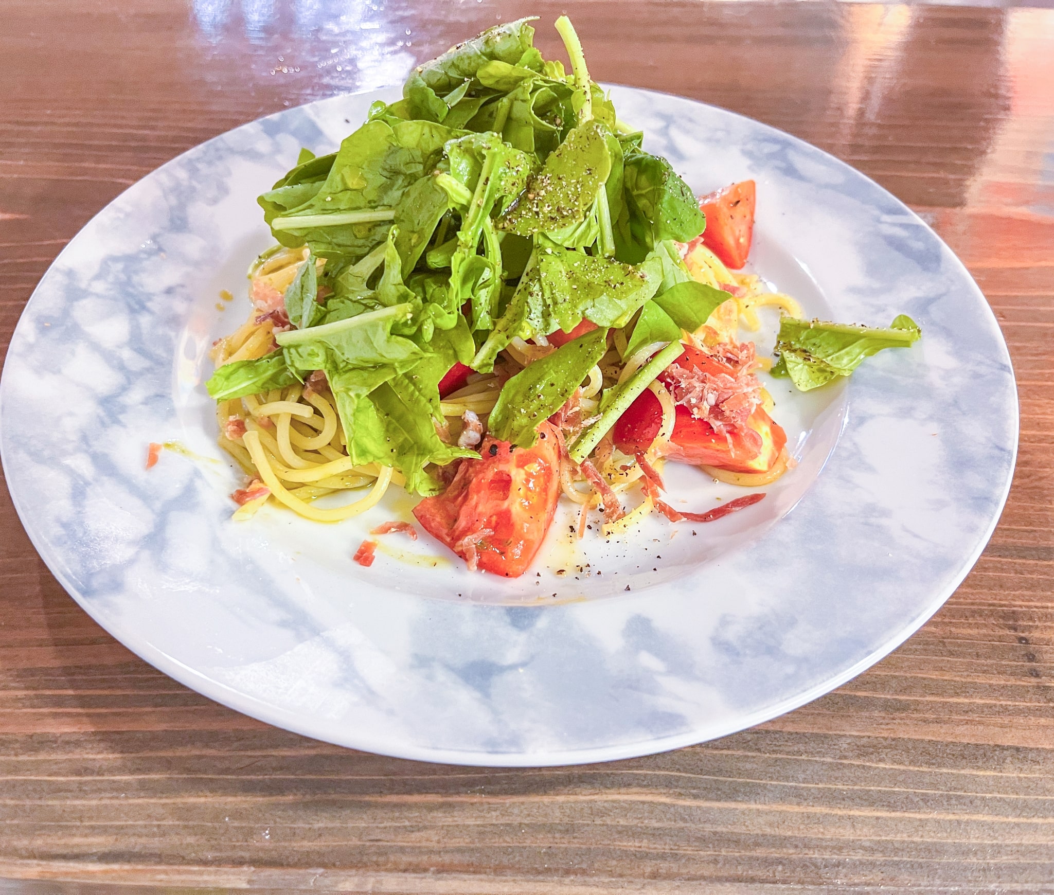 季節の野菜で彩るイタリア産の生パスタ。